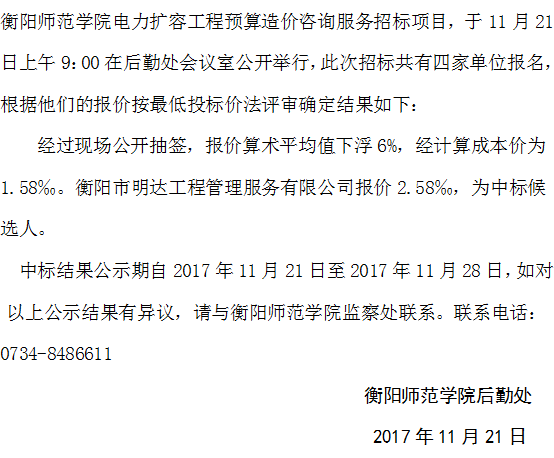 球王会体育电力扩容工程预算造价咨询服务招标中标结果公示