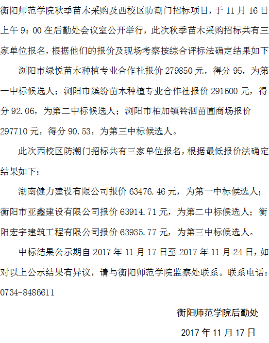 球王会体育秋季苗木采购及西校区防潮门招标中标结果公示