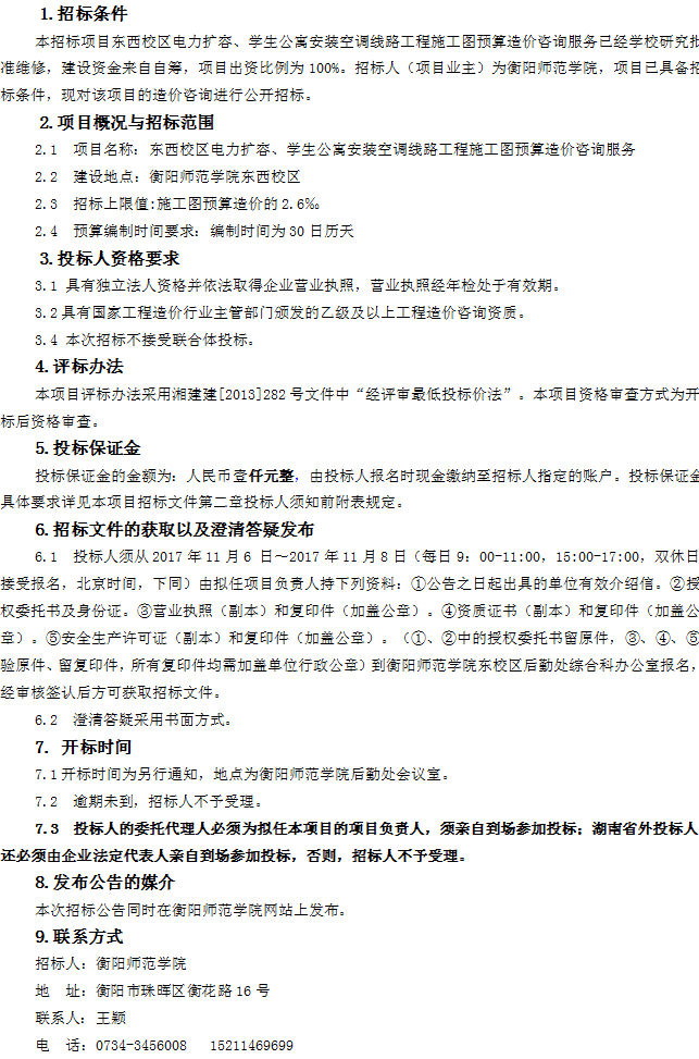 东西校区电力扩容、学生公寓安装空调线路工程施工图预算造价咨询服务招标延长报名时间的公告